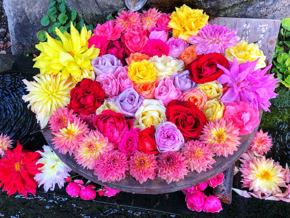 ダリア,ばら バラ 薔薇,花手水の投稿画像