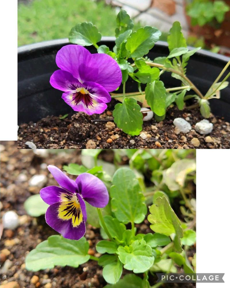 別の鉢に植え替えておいたらお花が咲いてくれました☘️💜💛☘️