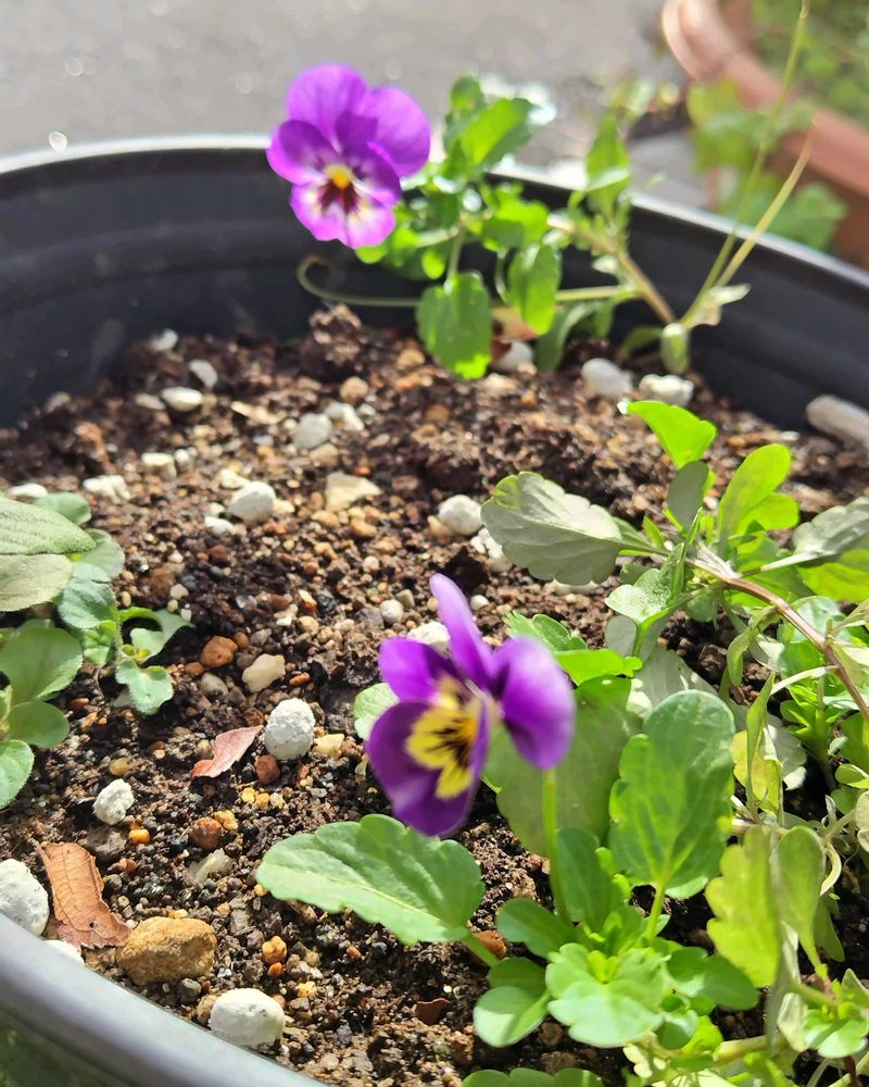 こぼれ種でクレマチスの鉢植えの中に生えていたビオラ🌱🌱