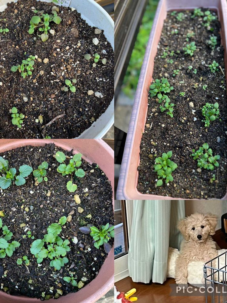 鉢植え片付けた時に、いつも通りにこぼれ種からの発芽がたくさん🌱🌱