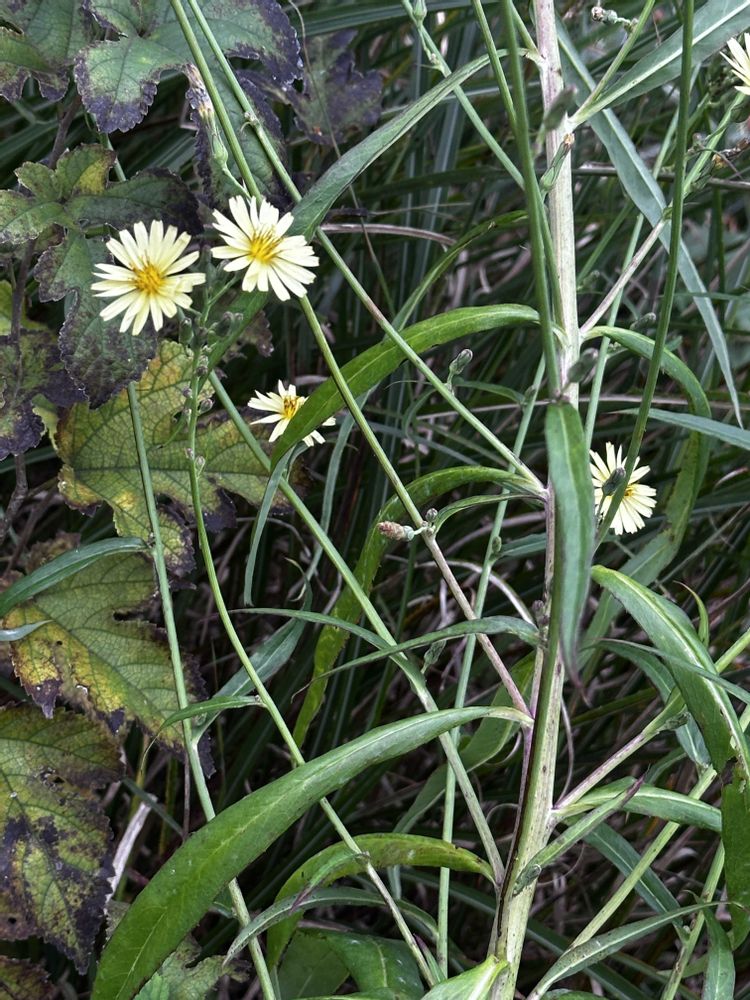 ケシ科の葉はギザギザ(鋸歯)しているのが特徴ですが、こちらの葉はギザギザしてないのでホソバアキノノゲシかな⁈.。o