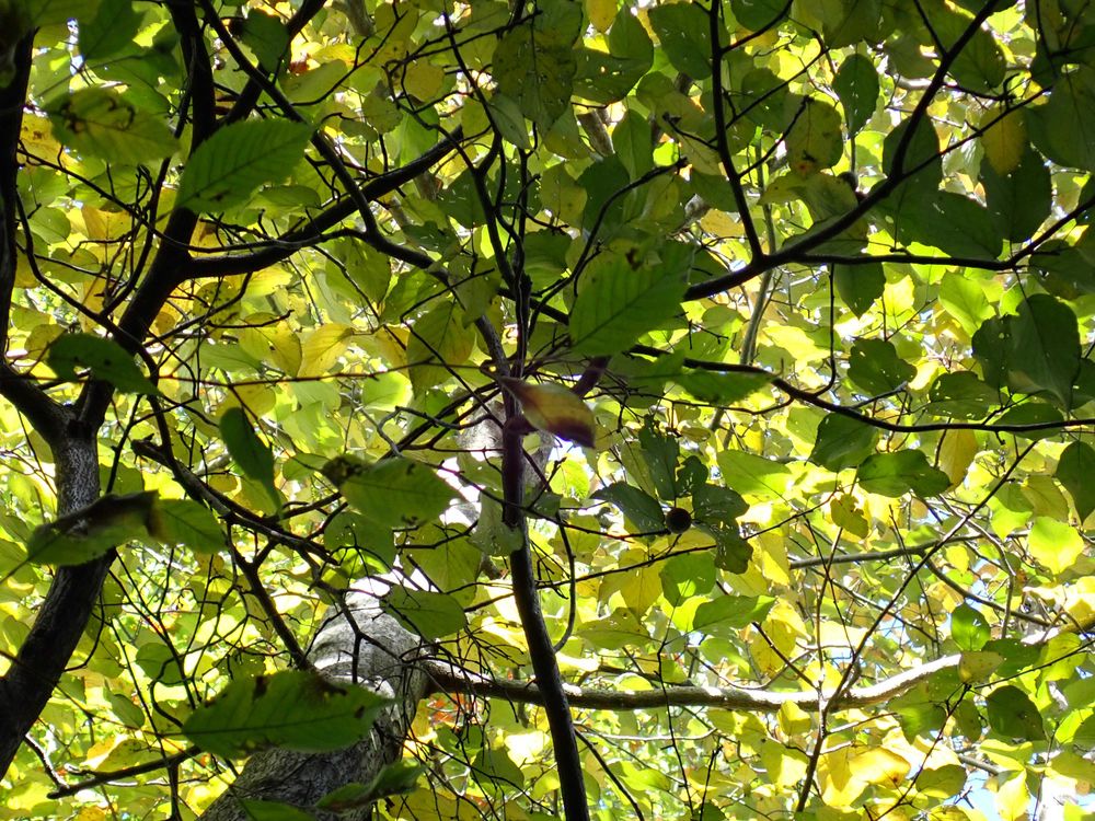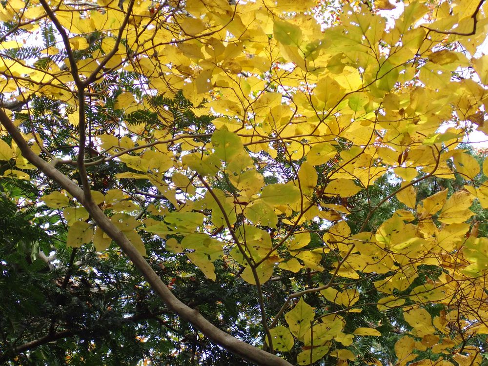 一週間後、もう一度、どんな木だったか、探しに行きました。そうしたら、紅葉が進んで、綺麗な黄色い葉になっていました。(④)