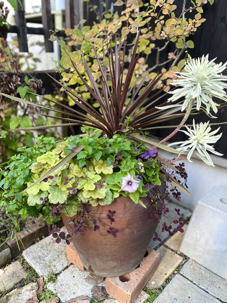 ①大きな寄せ植えがもりもり☺️