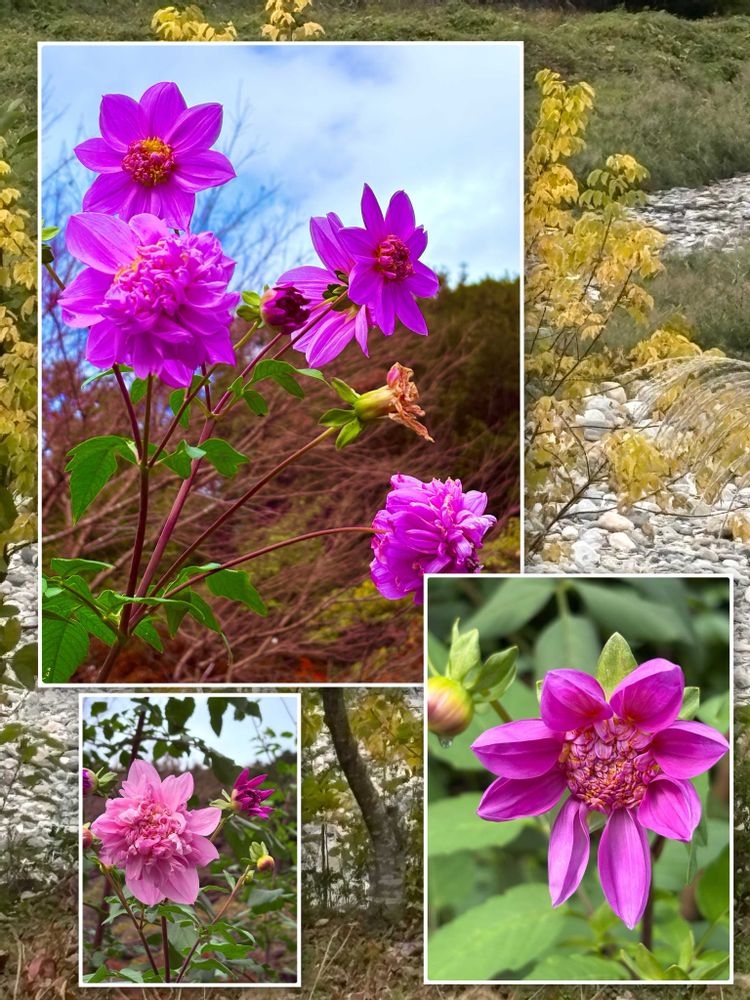 また、皇帝ダリアもたくさんの花を咲かせています。八重あり一重ありです😅
