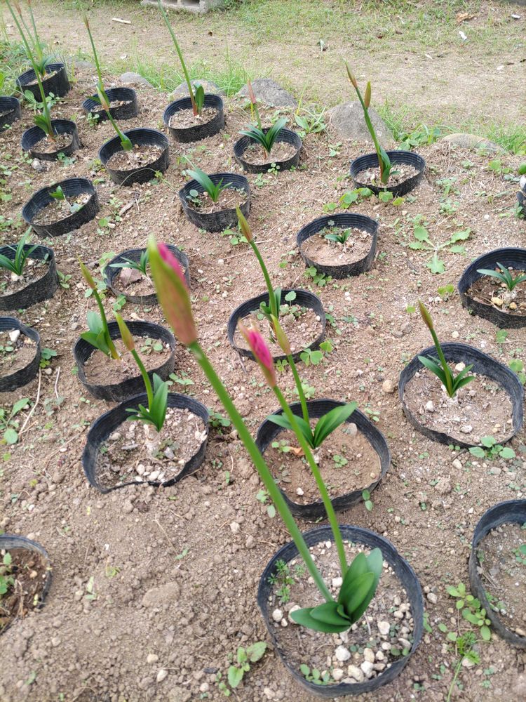 ダイヤモンドリリーの開花ぶりを見て来ました。まだ蕾でしたが、茎を伸ばし、ピンク🩷色の花色のぞかせて