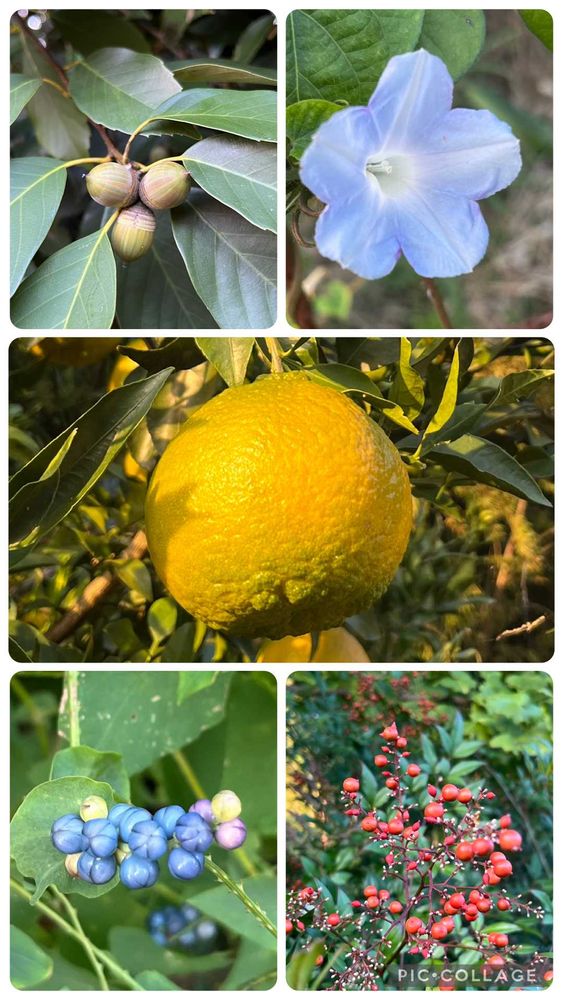 山のどんぐり、朝顔、デコポン🍊、イシミカワ🩵💙💜南天🔴🔴🔴🌿です^_^🎶💕