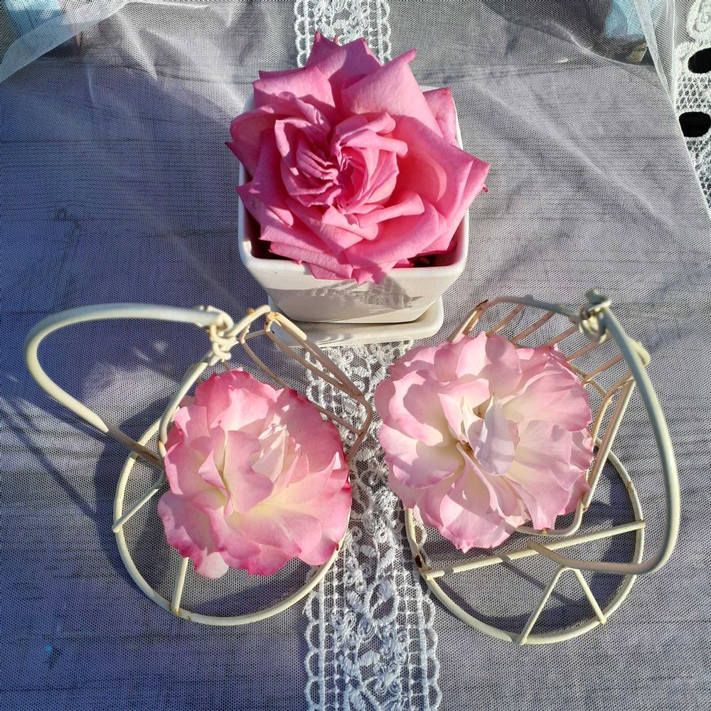 バラとブランコ😊😊😊❤ブランコは100均です😌😌😌❤アレンジのバラはマチルダとウエディングベルズ🌹ブランコに乗ってユラユラ可愛いマチルダさん😊😊😊❤後ろで見守るウエディングベルズ