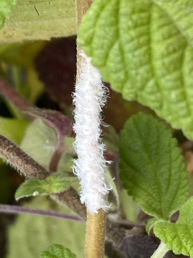 ④ランタナの枝や伸びている枝によく付いています。綿毛のような真っ白い…害虫なのかな(˙˙*)?