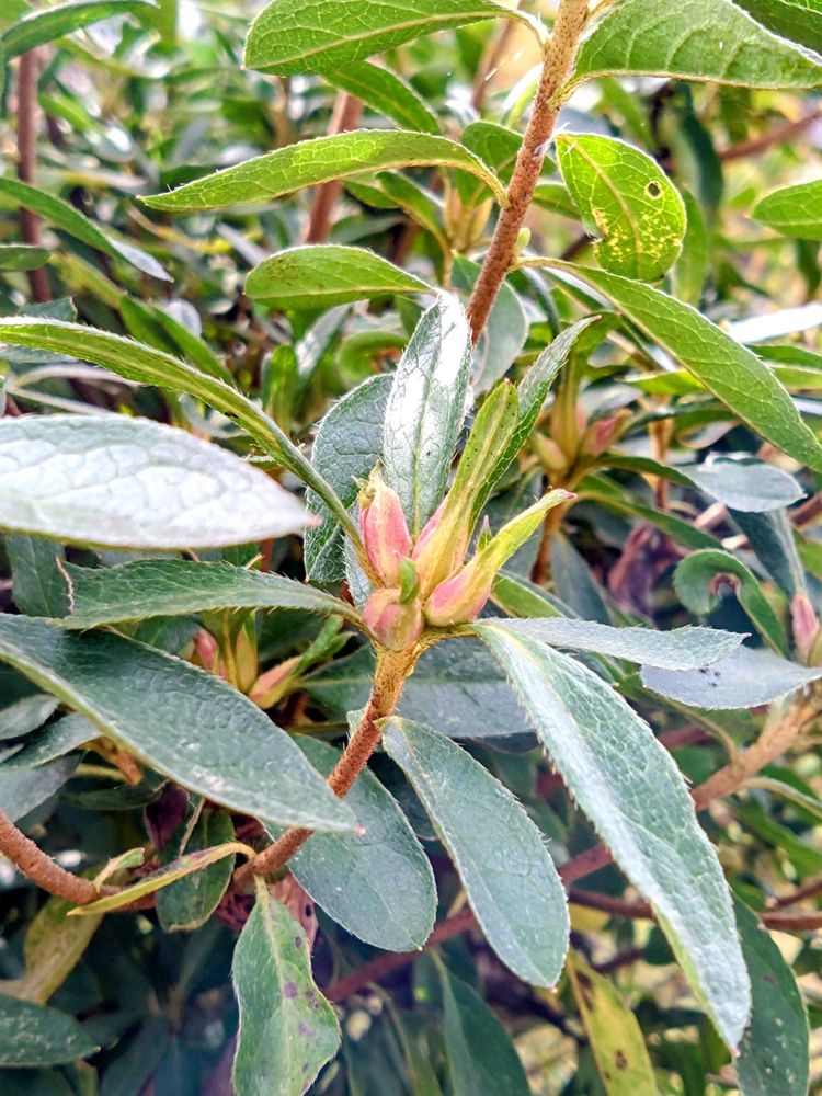 ③ナツボウズを縛り付けたツツジは所々ピュンピュン枝が飛び出してて、剪定しようとしたら成長点がピンクなんですよ🩷