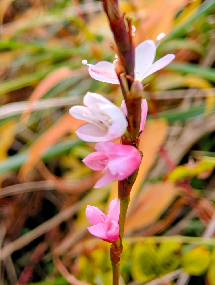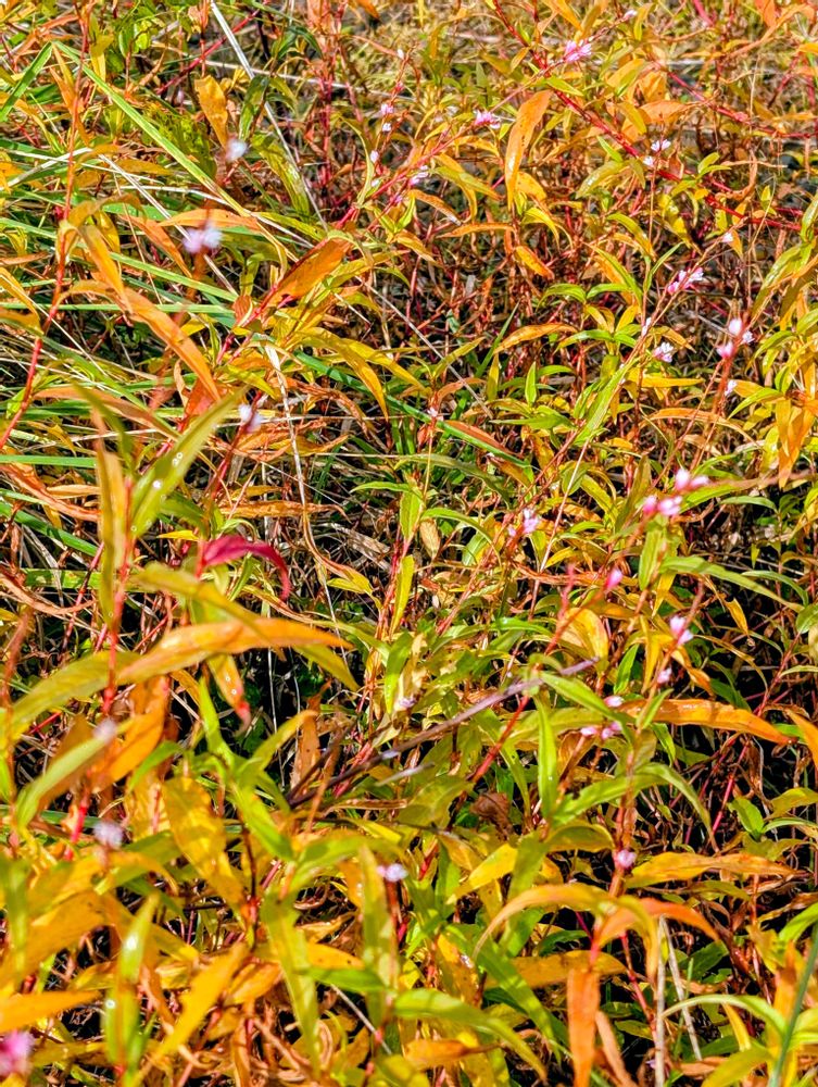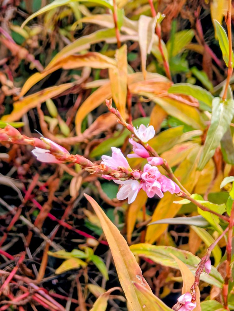 最初黄葉が目に入りました。よく見たら花が咲いてて、どうもサクラタデのようなので嬉しかったです(*˘︶˘*).。.:*♡🩷