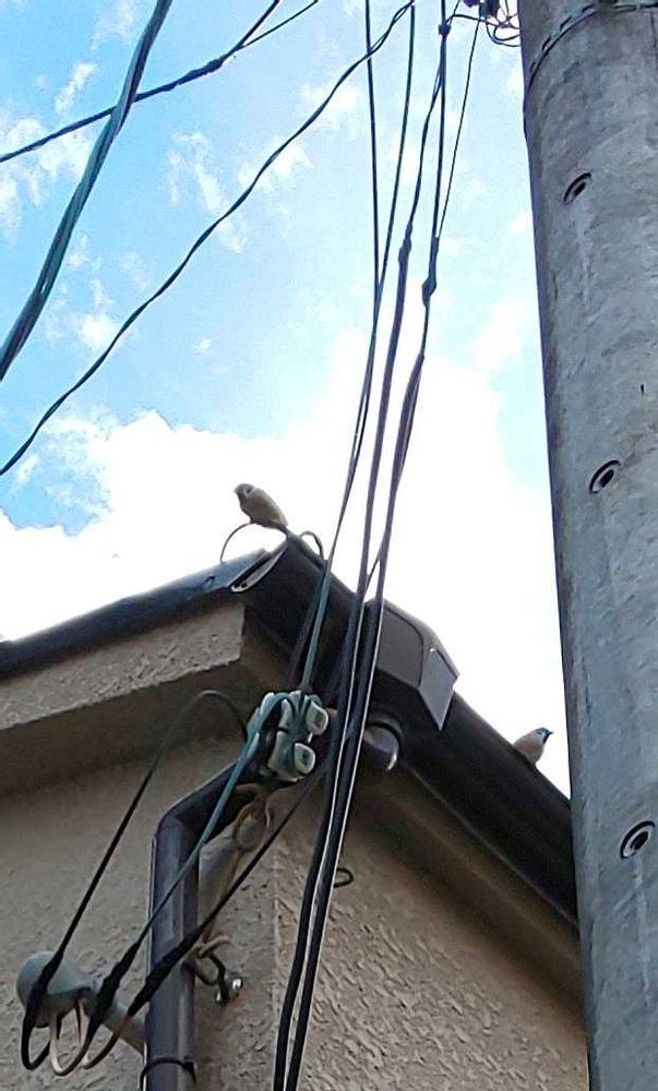 ③お隣の屋根にとまって様子見をしているチュン 🐦️