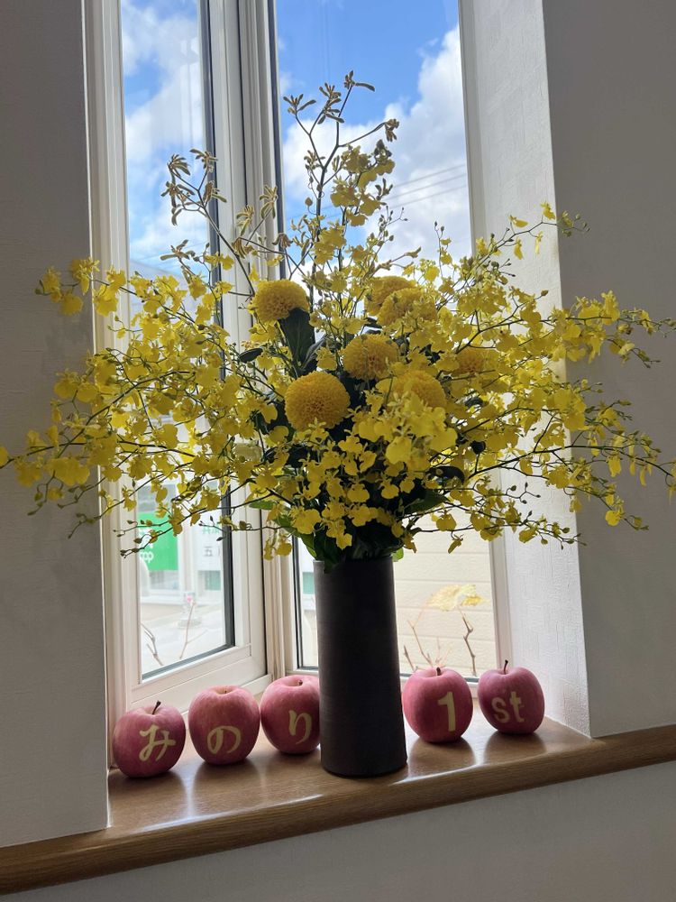 同色で生けるのも素敵✨💛お部屋に生花あるっていいよね🥰