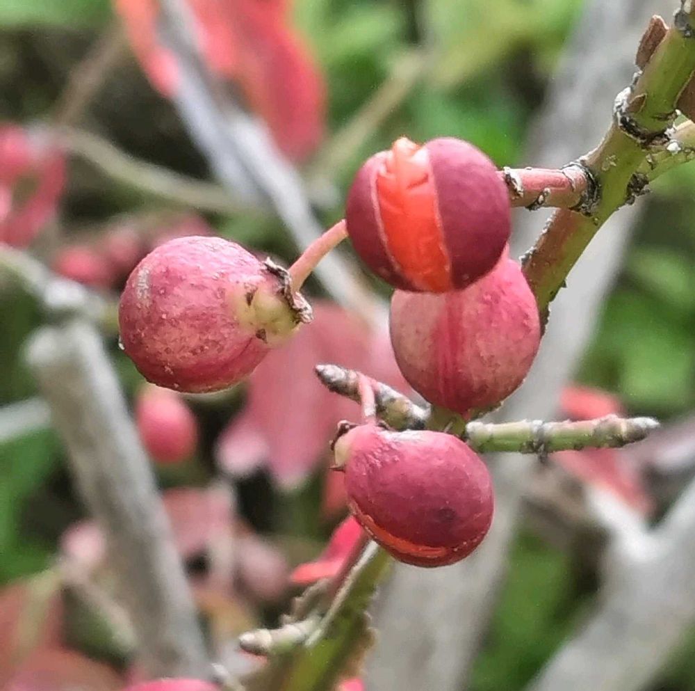 貧弱なニシキギの木に赤い実が成っていました‼️