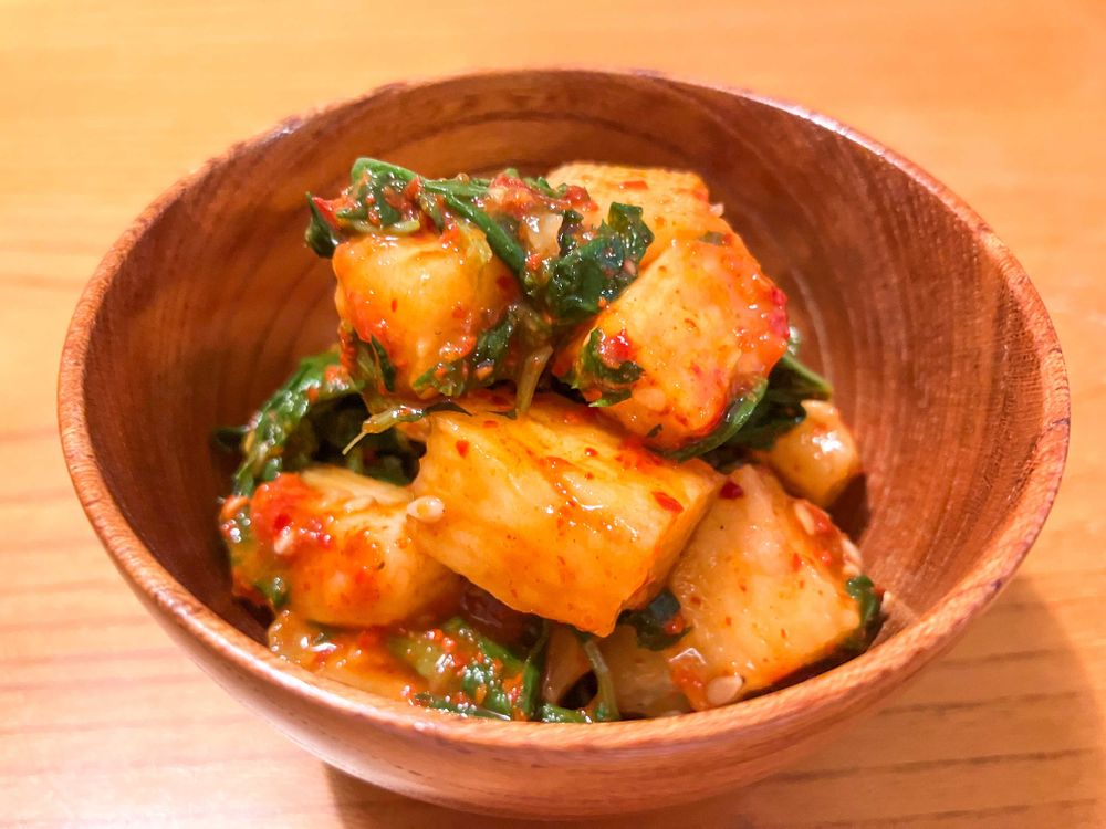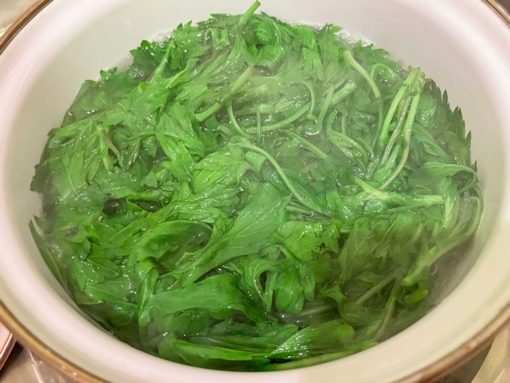 アクも殆どないのでササっと湯がいてサラッとお水に晒してザクザク刻んで和え物とキムチに
