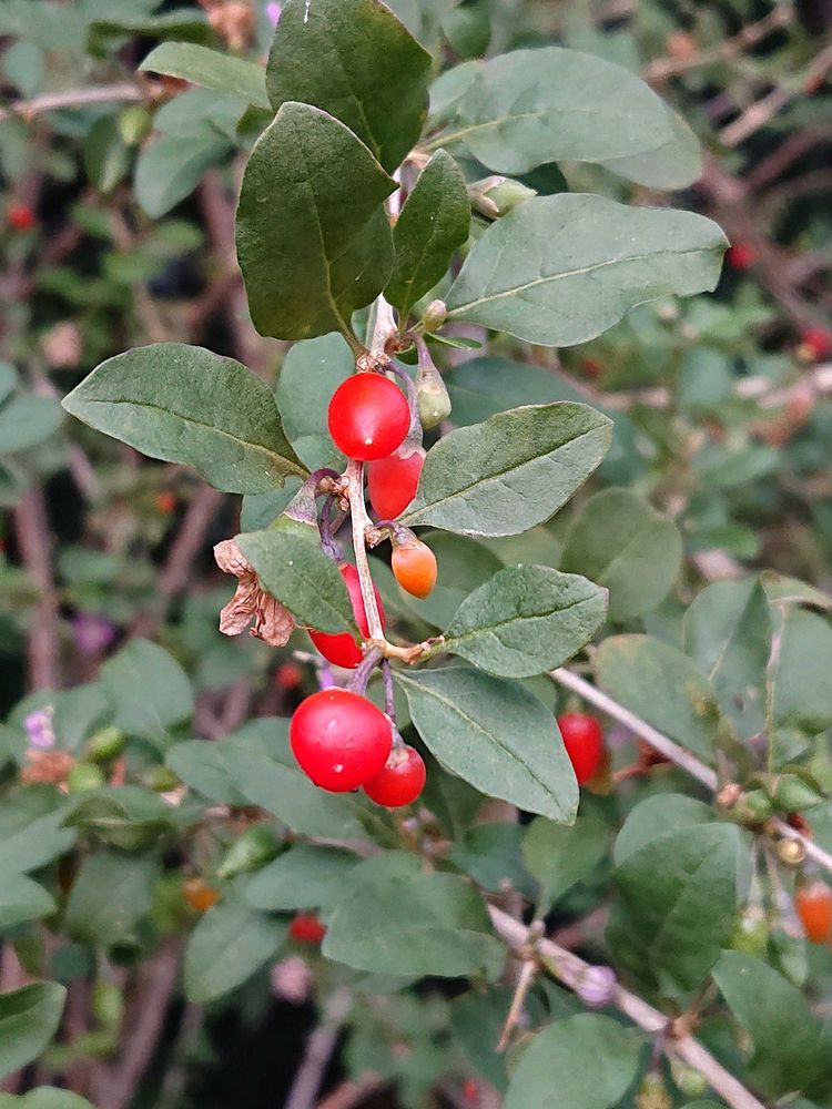 今ごろ、グミでもないし、なんだろうとおもったら、クコの実でした。そのままでも食べられるのか、わかりません。