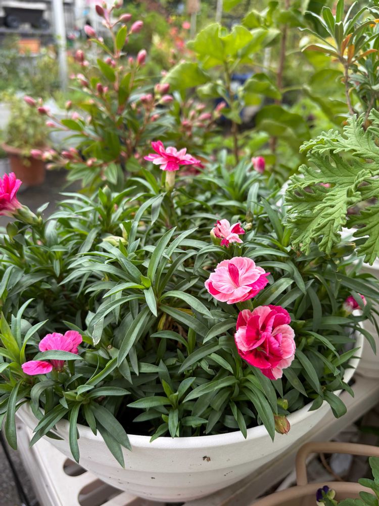 ベコニア💗💚💗さんからミニカーネーション💮💚💮さんまでみんな爽やかに美しく咲いていますね‼️