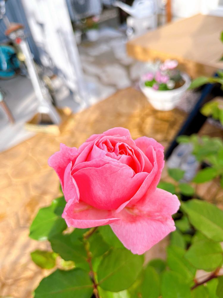 中古で購入した家で、お庭は荒れ放題でしたが、このピンクの薔薇がいつも健気に咲いてくれていて…外構工事の際に伐採する前、少しだけ枝を切り取り挿木したんです🌹そしたらモリモリ成長してくれて✨