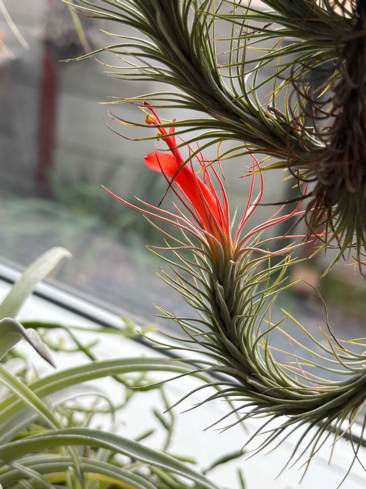 緑だけの窓辺に、🟥がすごく目立ってますよ!