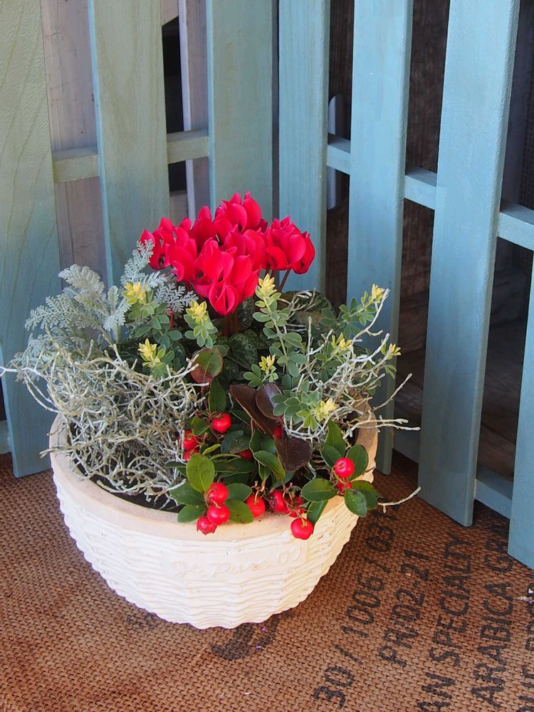 ガーデンシクラメンとチェッカーベリーの寄せ植え
