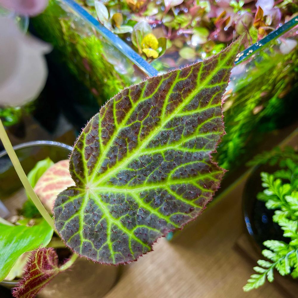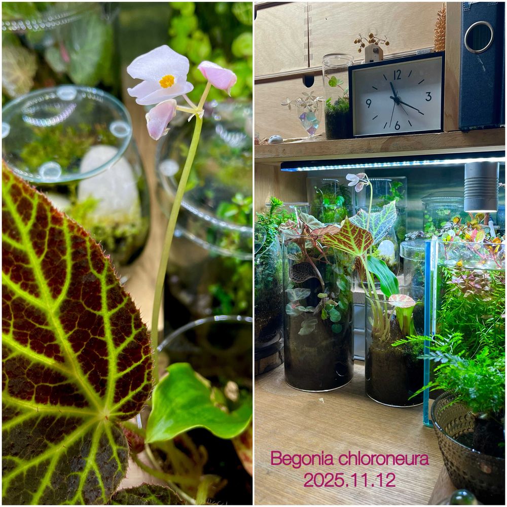 ベゴニア・クロロネウラに白くてかわいいお花が咲きました♪