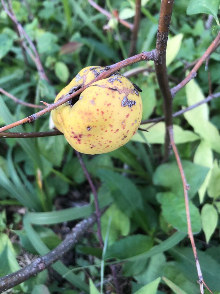 今日のお花「ムベ」によく似た「ポポー」の実、「アケビ」の実、「ボケ」の実です。🍐🥭🍋😋😄✌️