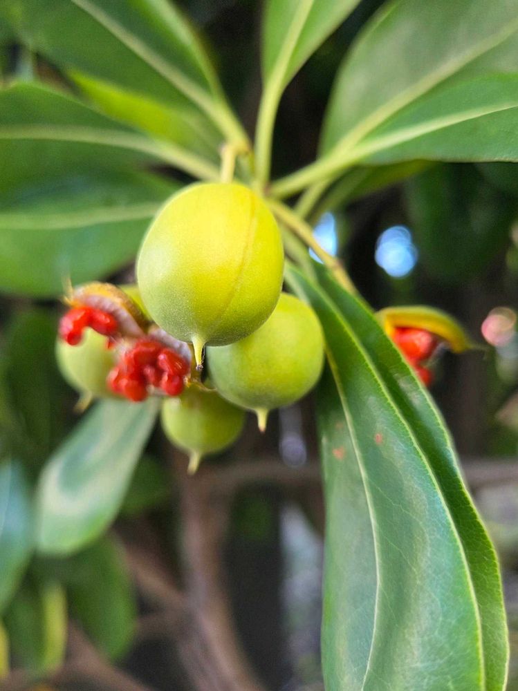 実の中から真っ赤な粒々の実が顔を出してます😅