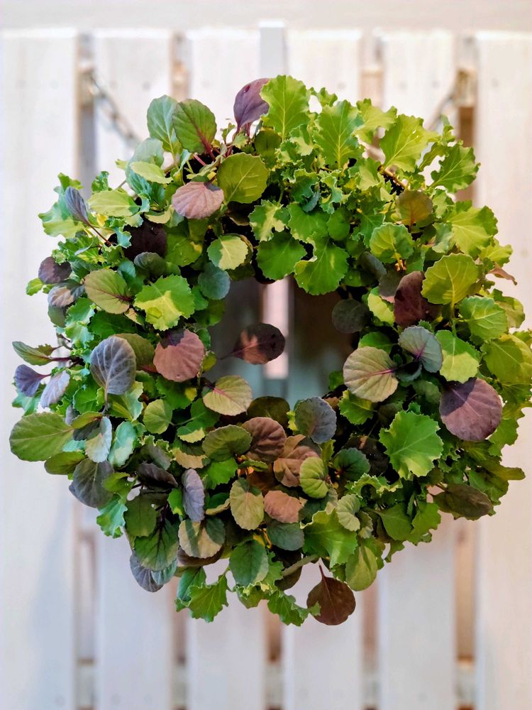 昨日の葉牡丹リースの様子。種蒔きから約50日。色も少し出てきて、控え目に見ても可愛い😍。