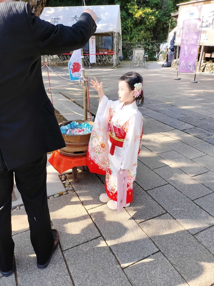 七五三の姿が花やかで、おじいちゃんおばあちゃんが
