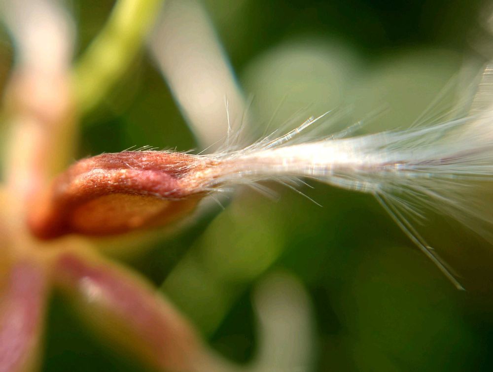 約3cmほどに伸びた花柱は徐々に毛が開いて羽毛状となり、果実は風によって飛ばされる(風散布)