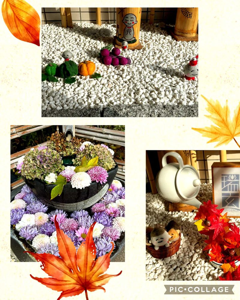 花手水💐もだけどフェルトです作ったお地蔵さんや飾りも❣️今回は初登場のティーポット🫖も😃