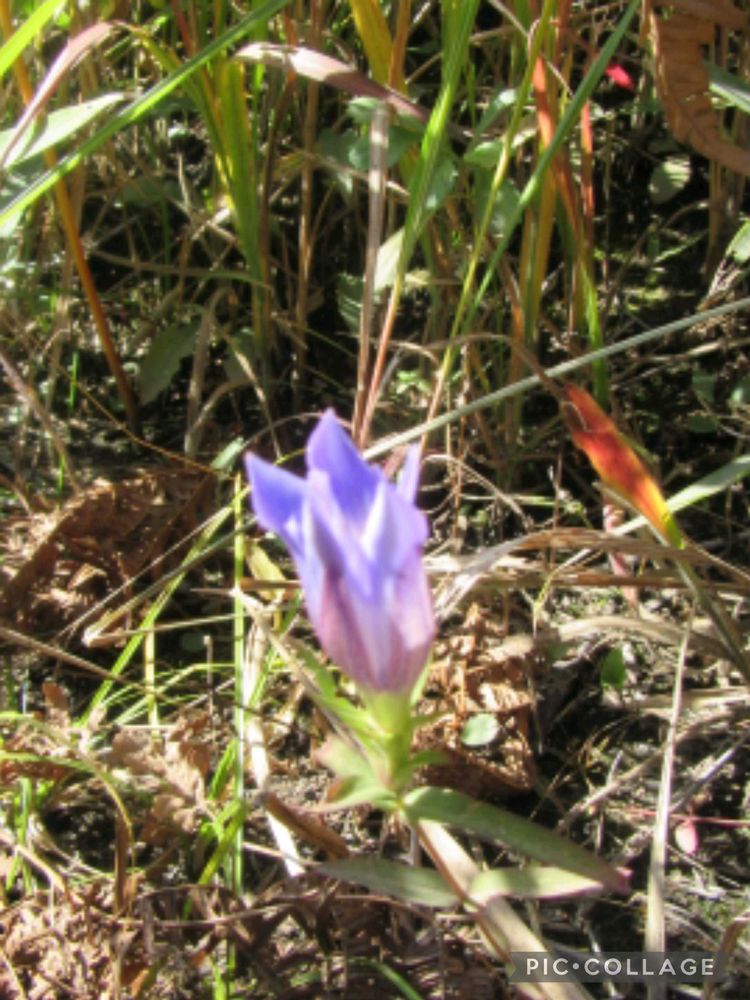 ③ススキ原を歩いててふと足元見たら一輪のリンドウも