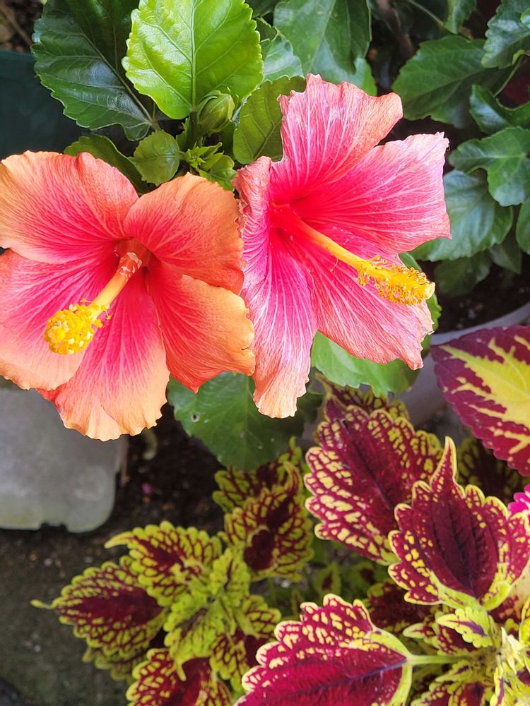 今日朝のハイビスカスユミさん🌺🌺2輪咲いています🤭