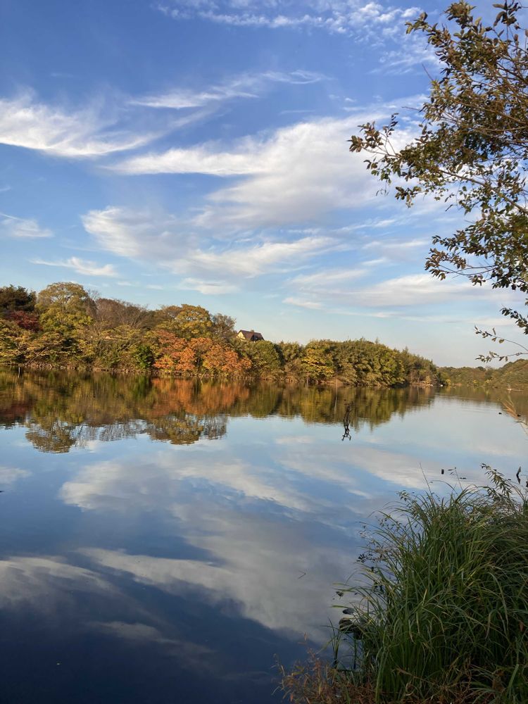 水辺に紅葉し始めている木々があってとても素敵なお散歩コースですね~🌳🌲🏞️:.* ♡(°´˘`°)/ ♡ *.: