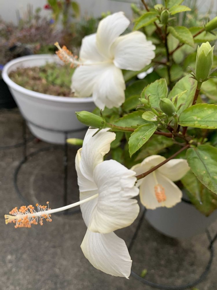 ハイビスカス🌺🩶ケイトさんも🌺🤍ホワイトさんも綺麗に咲いて快調ですね😃👍️