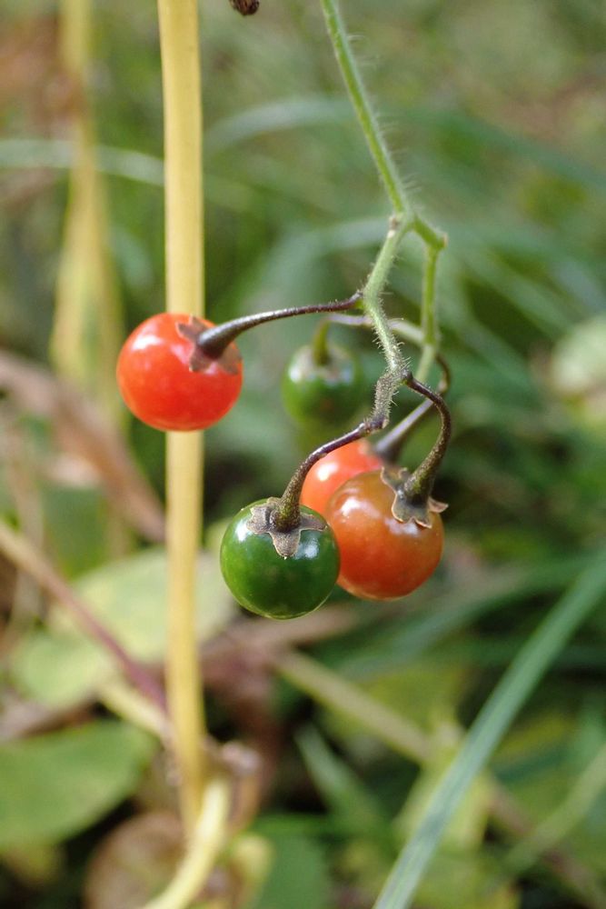 📝実だけ見るとどちらがどちらか〜😅よ〜く見ると花柄が短いか長いか❓😅やはり毛深いほうがヒヨドリジョウゴのようだ🙌