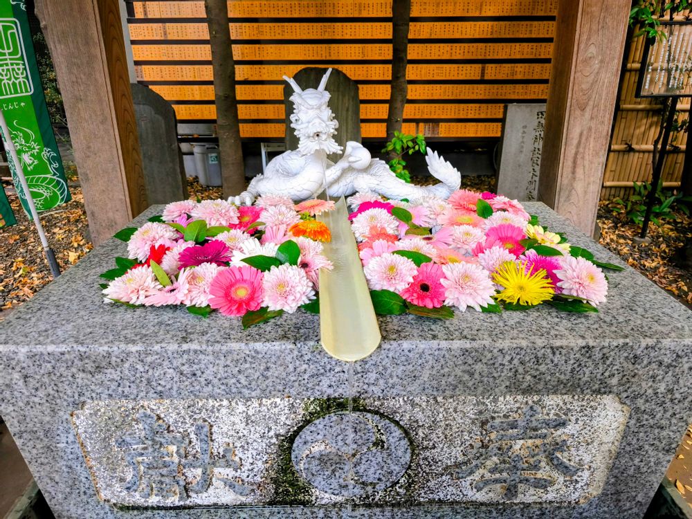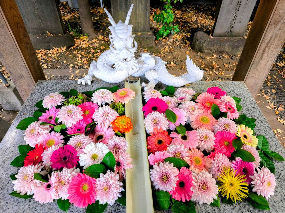 花手水や生け花、菊花などが飾られてお子さんたちやお母さん方の着物もあって境内がとても華やかな雰囲気でした✨