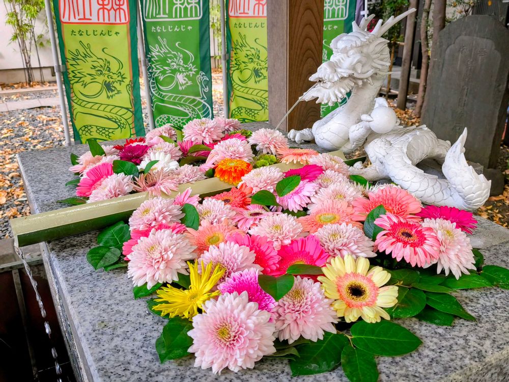 七五三の着物👘ってピンク色とかの優しい色合いが多いので花手水もそんな雰囲気で七五三気分を盛り上げてますね🤭