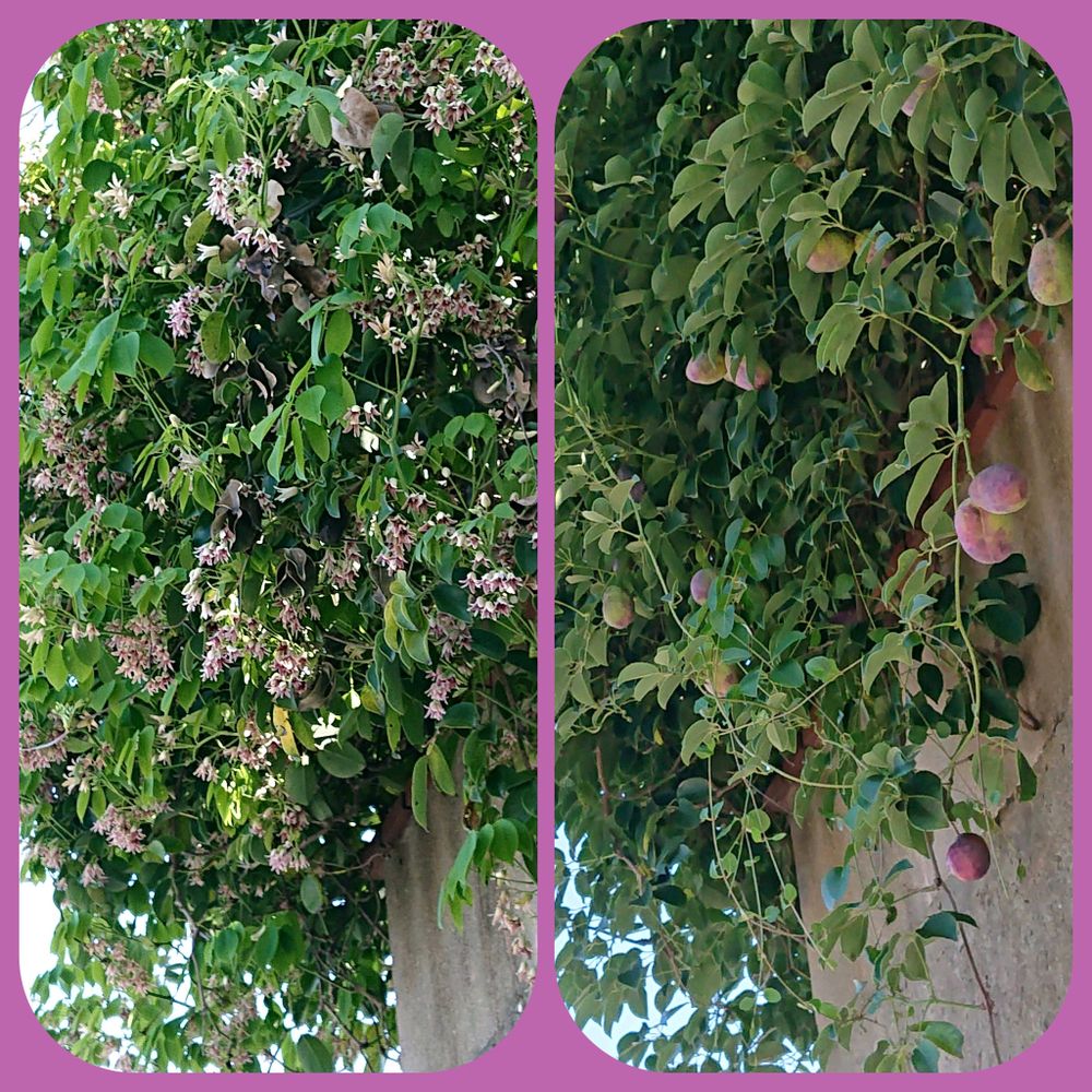 近くのおうちのムベです。毎年お花がいっぱい咲いて実がたくさんなります✨✨✨