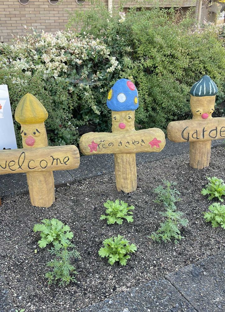 ②通勤途中の花壇 リフレッシュされてモルタルのえんぴつくん?家かな?愛嬌あり笑ってしまいました