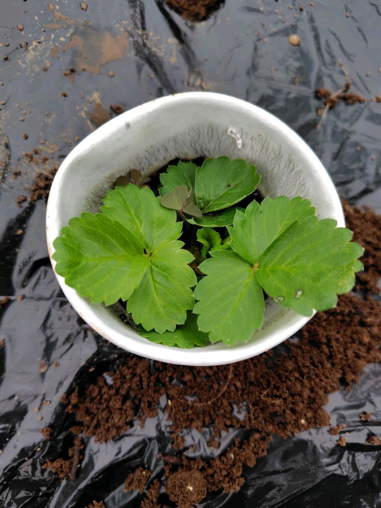 苺が沢山なったので、この品種の種をまた育てたくて、春に好奇心で試しに食べた後蒔いたら、1つだけ苗まで育ちました🍀☺️畑に植え付け完了🤗🍓