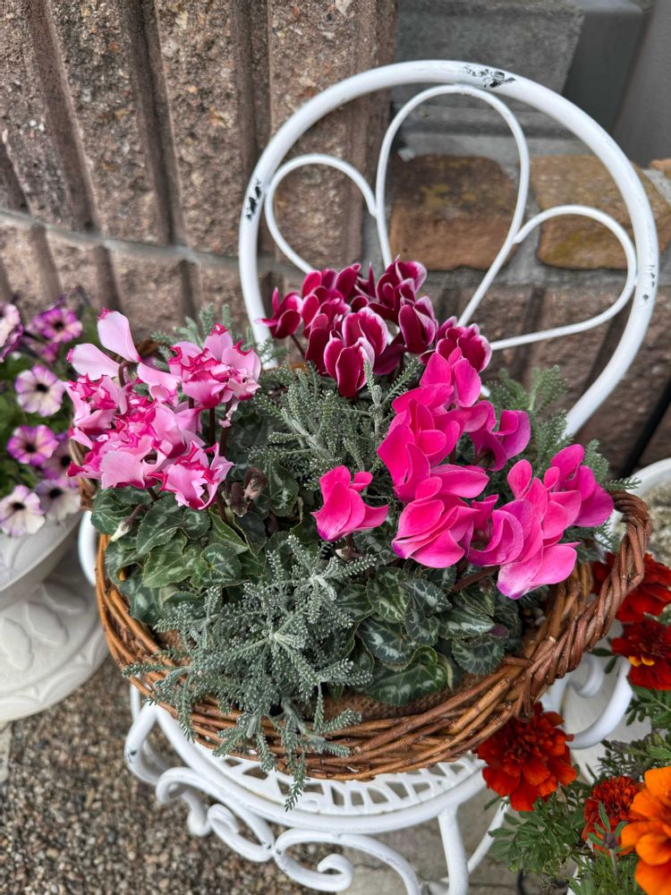 3種のガーデンシクラメンとサントリーナの簡単寄せ植え