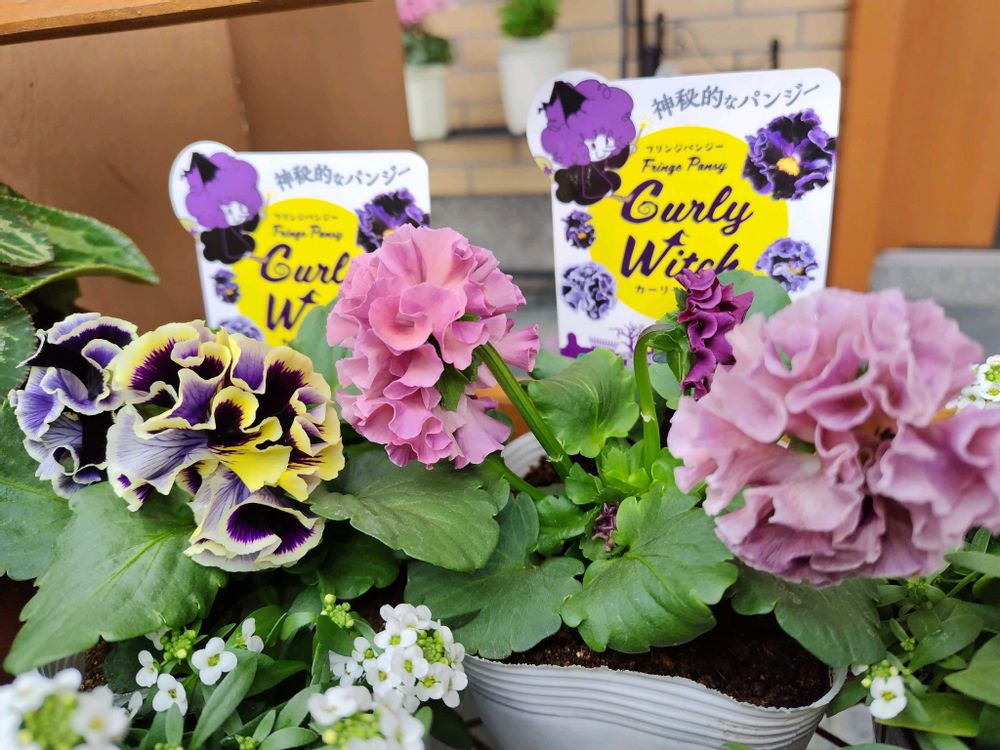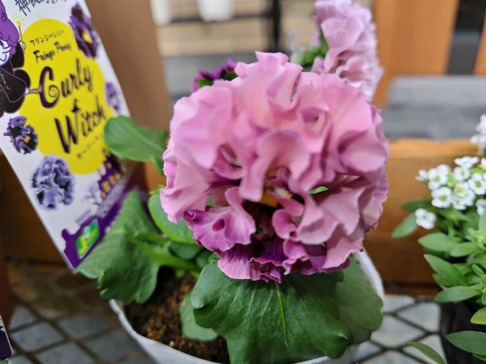 ホームセンターさんにフリルパンジーの「クラッピング」が入荷したら連絡をしてもらえるようにしていたら、着信歴があり、よく似たフリルパンジーのカーリーウィッチが入荷したので間違えて連絡したとのこと。◕‿◕。