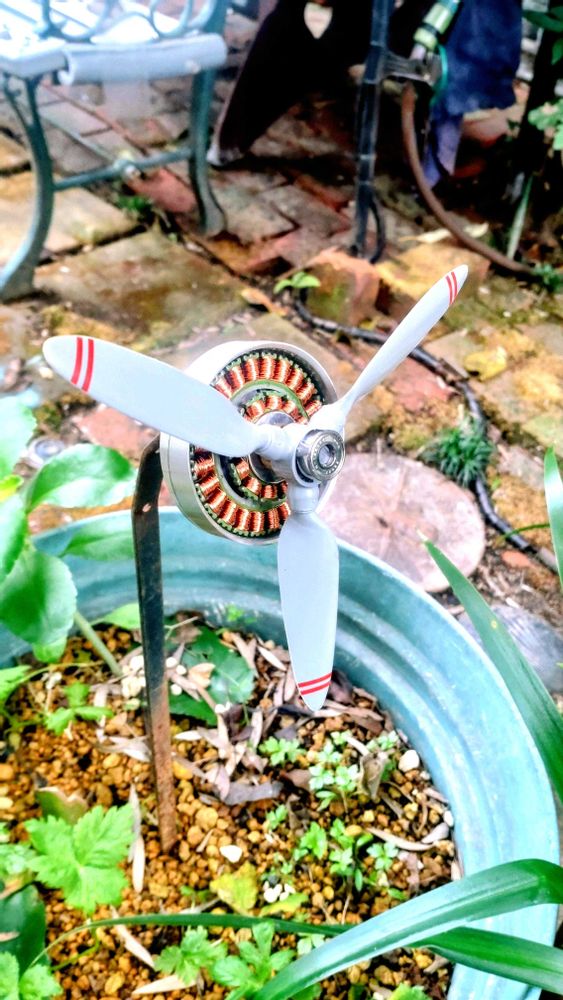 庭で咲いているのはツワブキと皇帝ダリア、風が吹くとプロペラが回るオブジェを作りました🙌