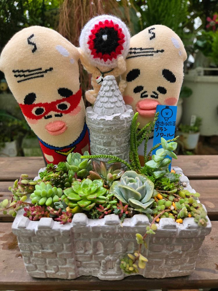 fukumomoさん『輪っしょい!プロジェクト』で届いたさきゅまるさんの多肉さん達と家のセダム少し入れて寄せ植えしました🥰