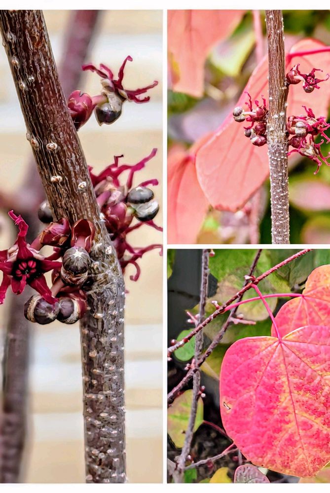 赤いマルバノキも、黄葉のマルバノキもかえでちゃんの黒いバッグ👜に良く似合う。