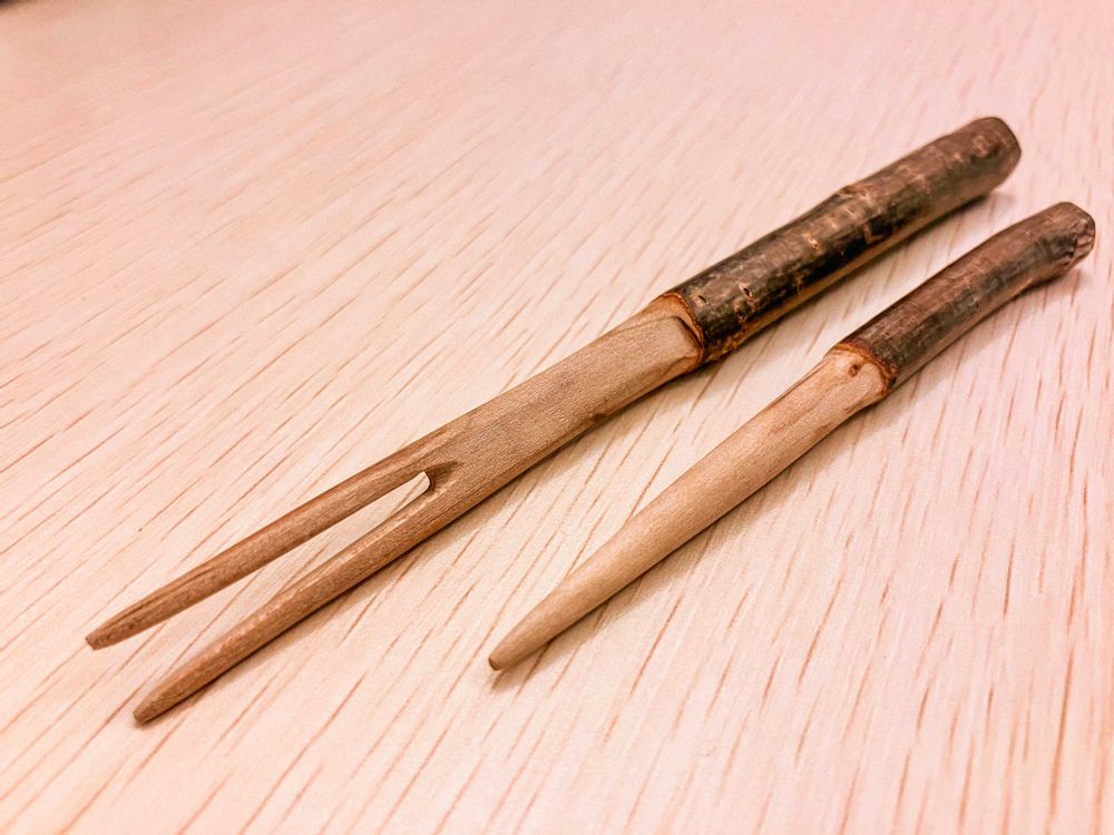 先日鹿児島の港でお迎えしたサクラの木の楊枝?フォーク?さん