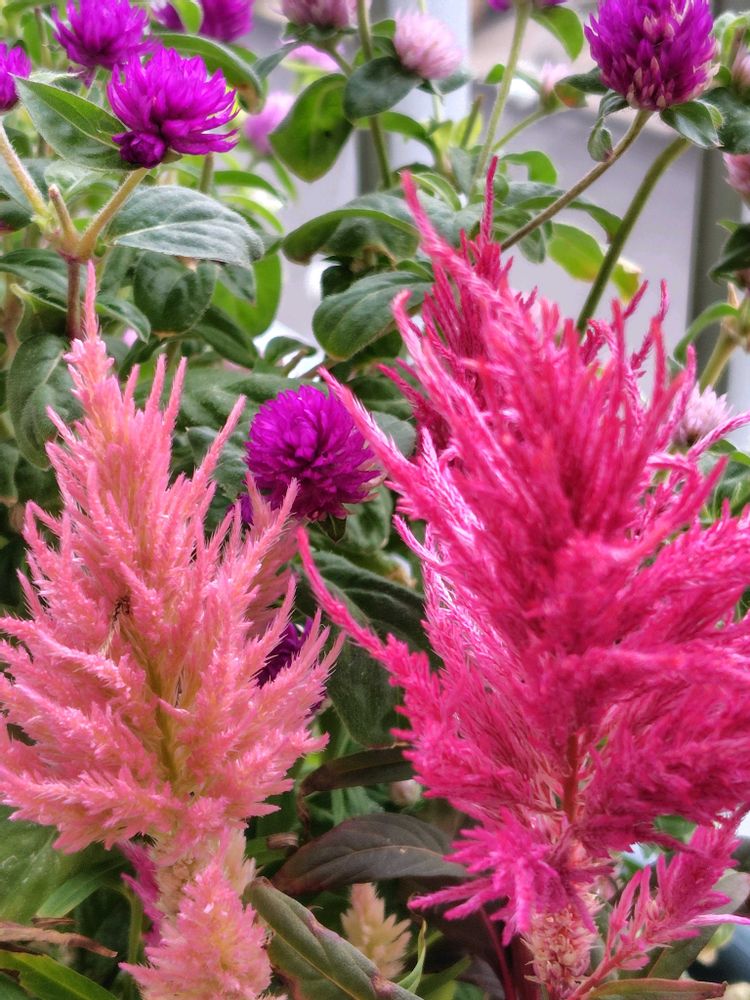 ③センニチコウとセロシアライオンハート…色合いが濃くなりもふもふ