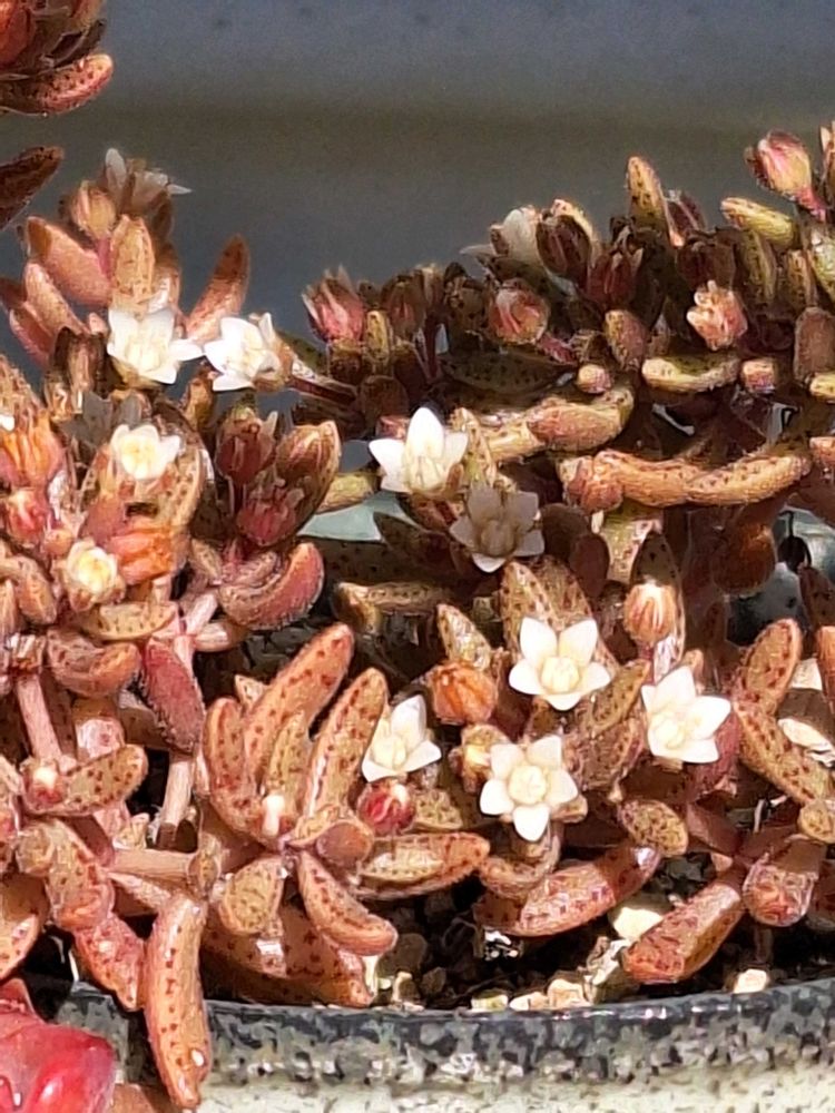 外置き多肉棚の多肉ちゃんのお花2種❣️☺✨