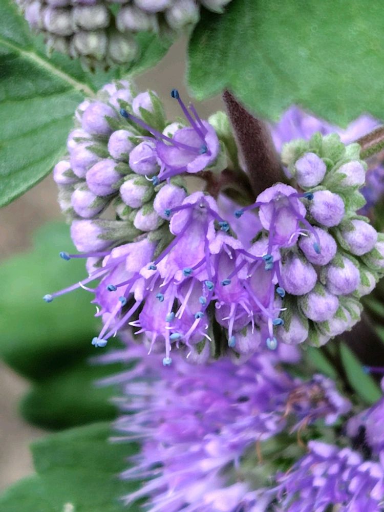 花冠は紫色〜青色で、筒部は長さ約3.5mmで、雄しべと花柱は付き出る。