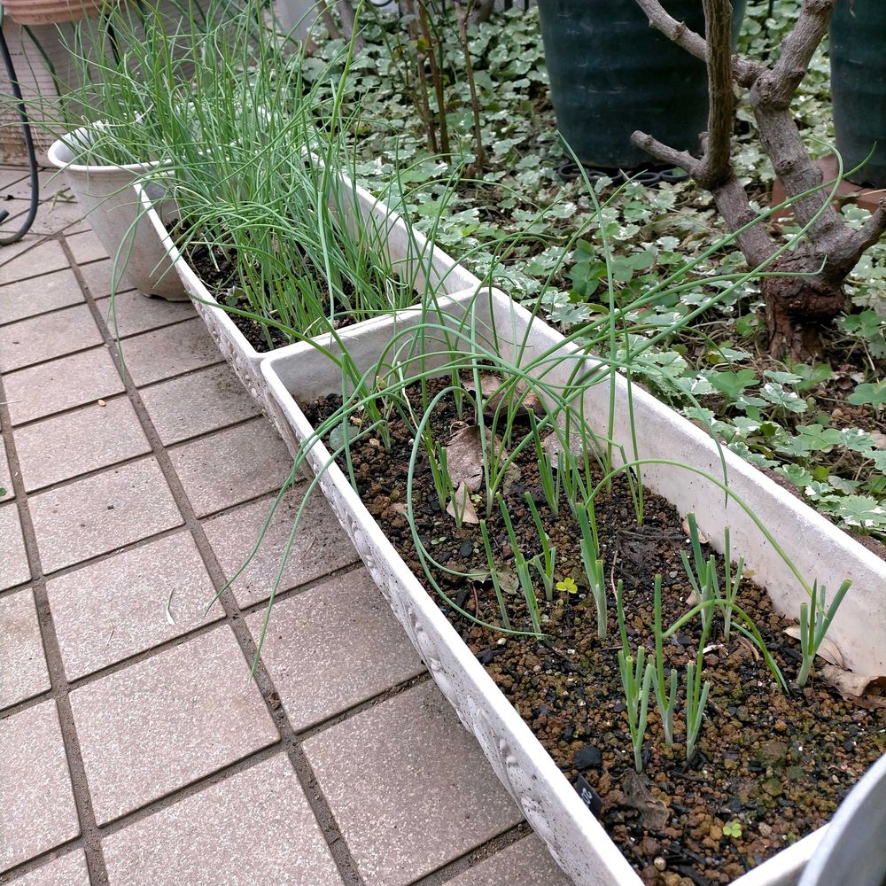 ニラは日影の場所なのですが、もう少し日が当たる場所を空けられそうなので、ニラの植え替え適期である2月下旬〜3月上旬に植え替えようと思います。忘れそうだなー😅